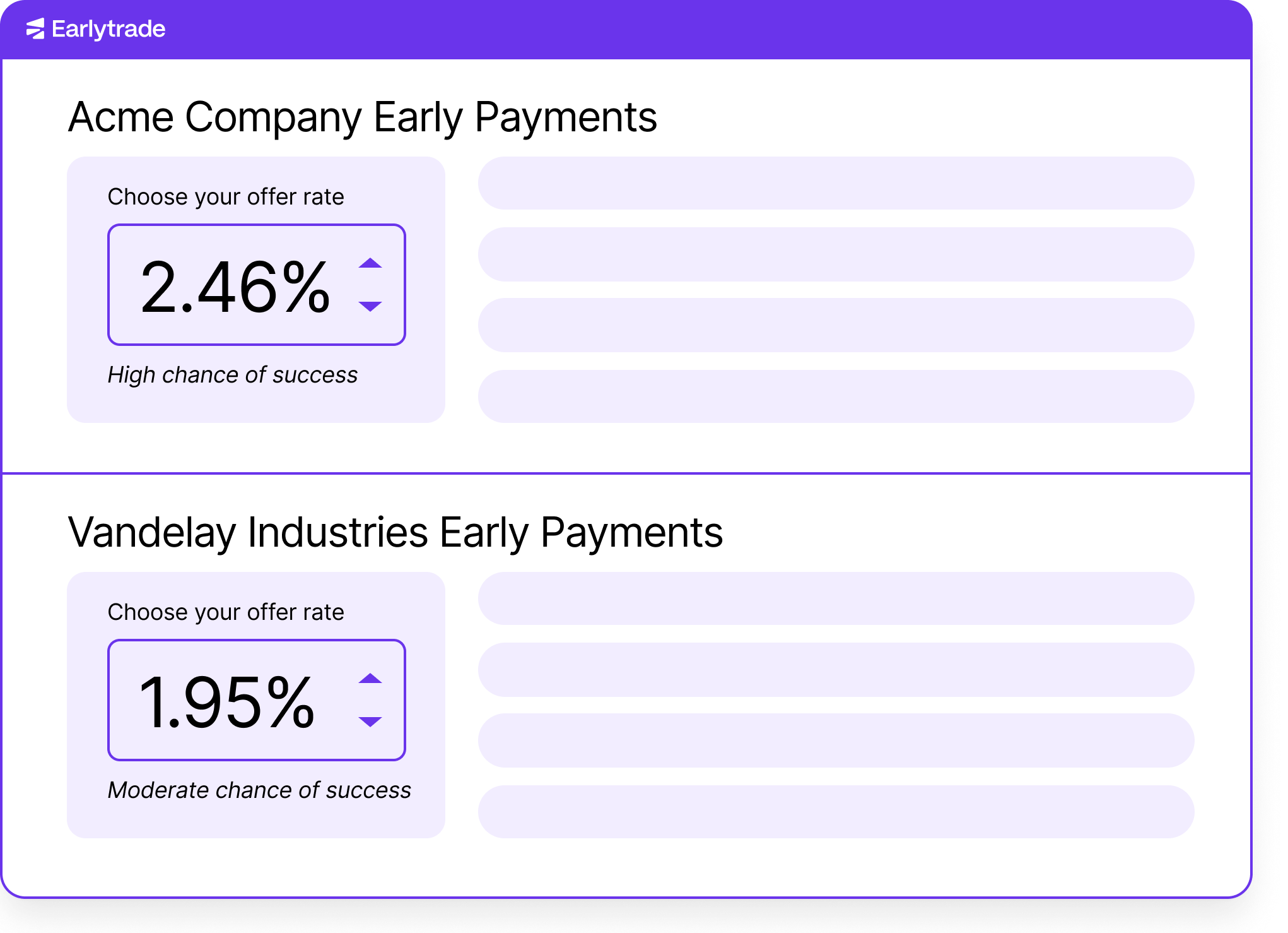 Choose whether to request early payment invoice-by-invoice, and set your own discount offer rates.